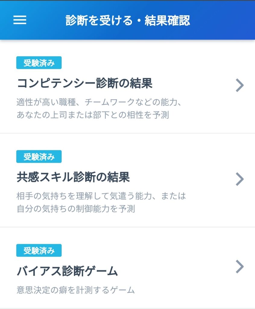 一方でコンピテンシー診断、共感スキル診断、バイアス診断ゲームは自己分析に活用できたので、そちらはぜひ参考にしてみてください。全部受けるのが面倒という人はコンピテンシー診断だけでも受けてみるといいですよ。